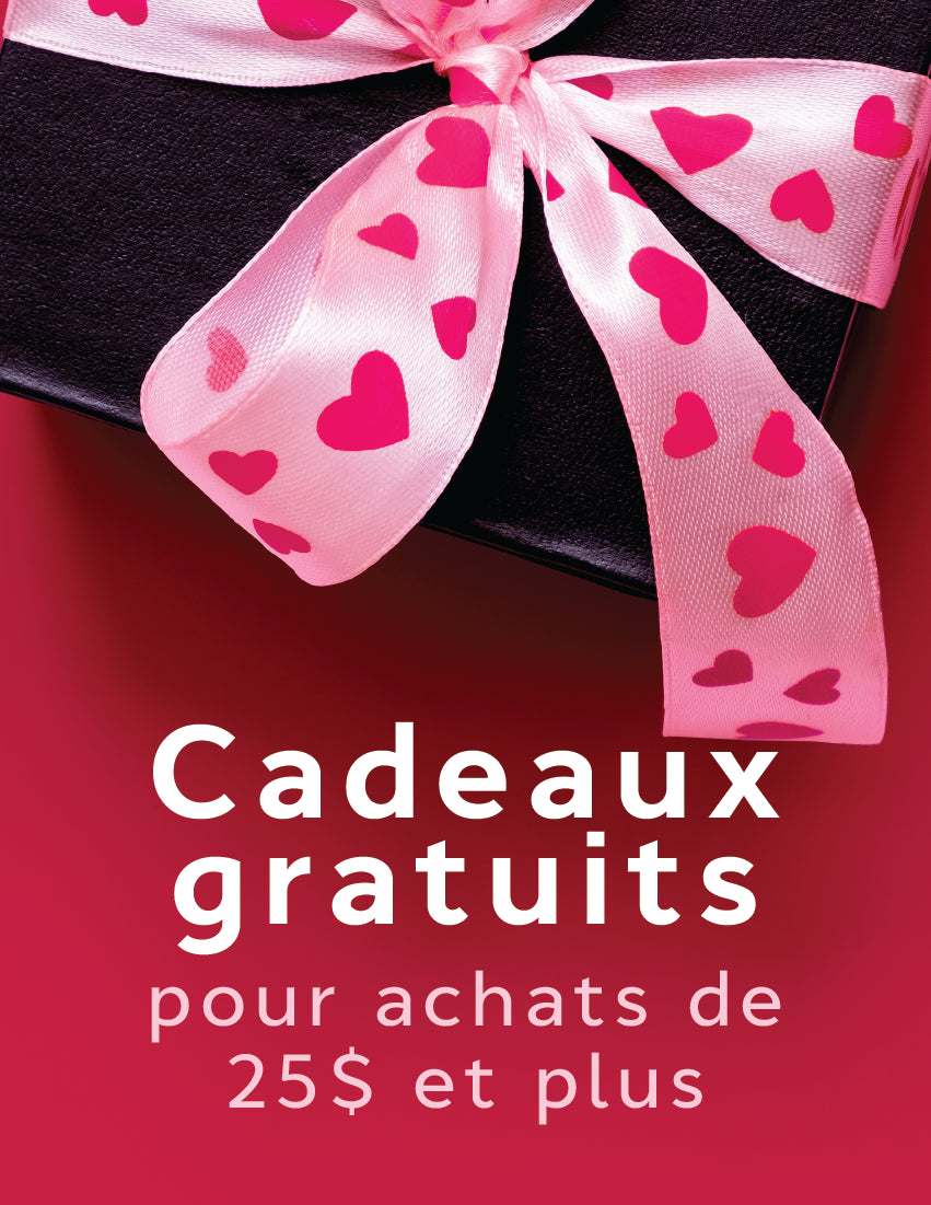 Le cadeau gratuit vous sera offert au moment de finaliser votre commande, avant de confirmer votre achat. Vous ajoutez le cadeau qui vous plaît à votre panier. Dès 25 $ d'achat (avant taxes, réductions et frais de livraison), vous recevrez votre cadeau gratuit ! Vous avez le privilège de choisir parmi une vaste sélection d'articles selon vos préférences.